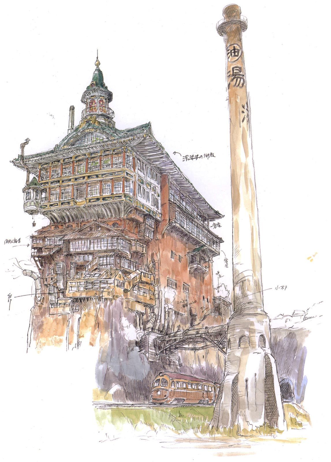 Il processo creativo di Hayao Miyazaki inizia con immagini e bozzetti ad acquerello, suggestioni della mente dalle quali prende forma la storia. Nella maggior parte dei casi, il regista ha iniziato la produzione senza aver ancora delineato lo sviluppo e la fine del film, esattamente come nel caso de “La città incantata / Spirited Away / Sen to Chihiro no kamikakushi” (2001).