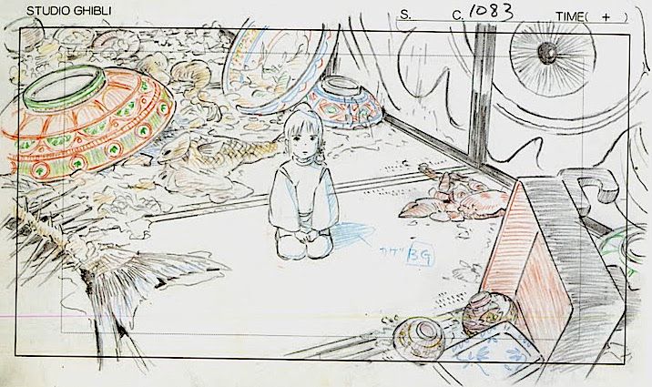 Miyazaki è un regista molto coerente con se stesso e una delle sue peculiarità più impressionanti è la gestione del tempo: ogni inquadratura non è mai casualmente lunga o breve, ha esattamente la durata che egli si era immaginato dall’inizio…ma come è possibile? Semplice: usa un cronometro mentre prefigura mentalmente la sequenza, per poi annotarla velocemente sullo storyboard!